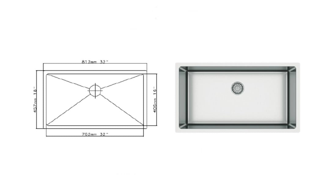 33" Stainless Steel Handmade undermount single-bowl kitchen sink