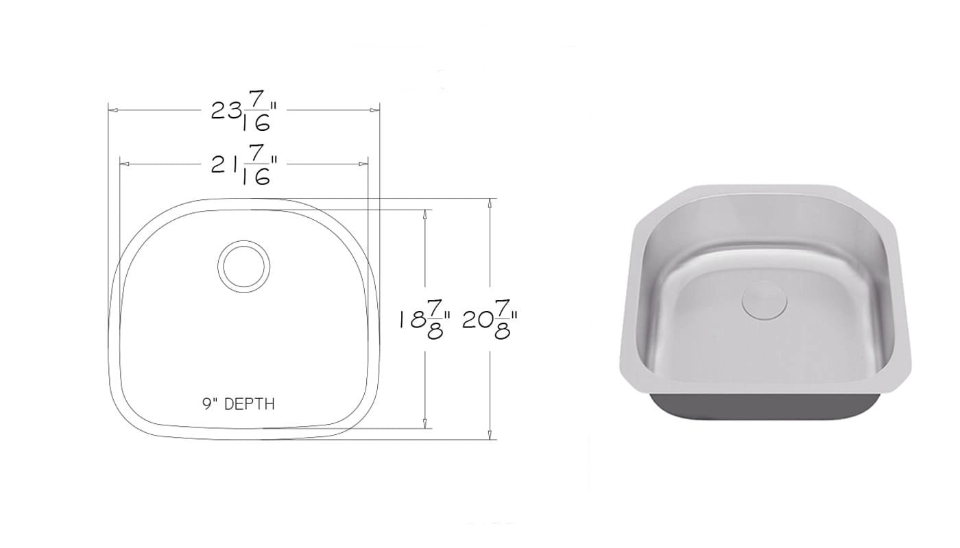 24" undermount single-bowl kitchen sink